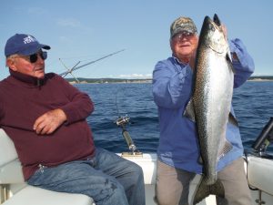 Since fishing is so good, boat traffic is sometimes intense. Stormy Chinook routinely leaves the “pack” and fishes productive areas north of Frankfort that few boats ever visit.